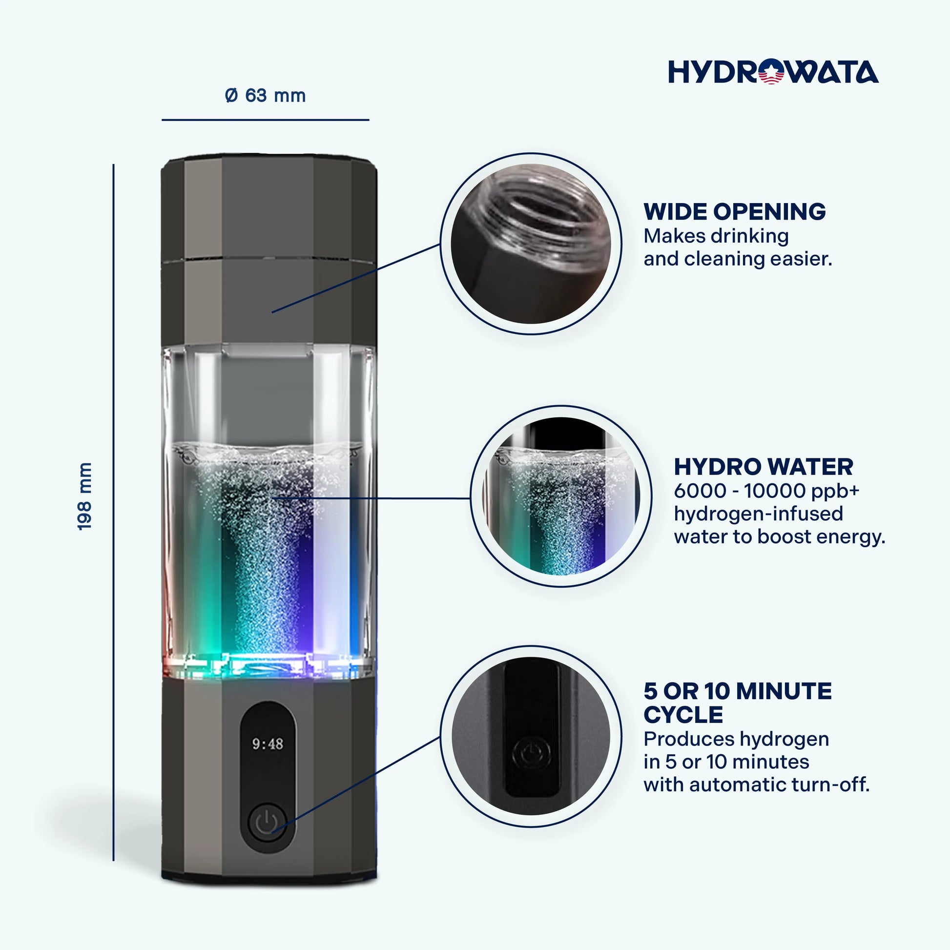 • HydroWata™ Hydrogen Water Bottle Pro version: Step up your hydration game with our advanced Pro version, featuring enhanced technology for optimal hydrogen infusion and improved water quality.